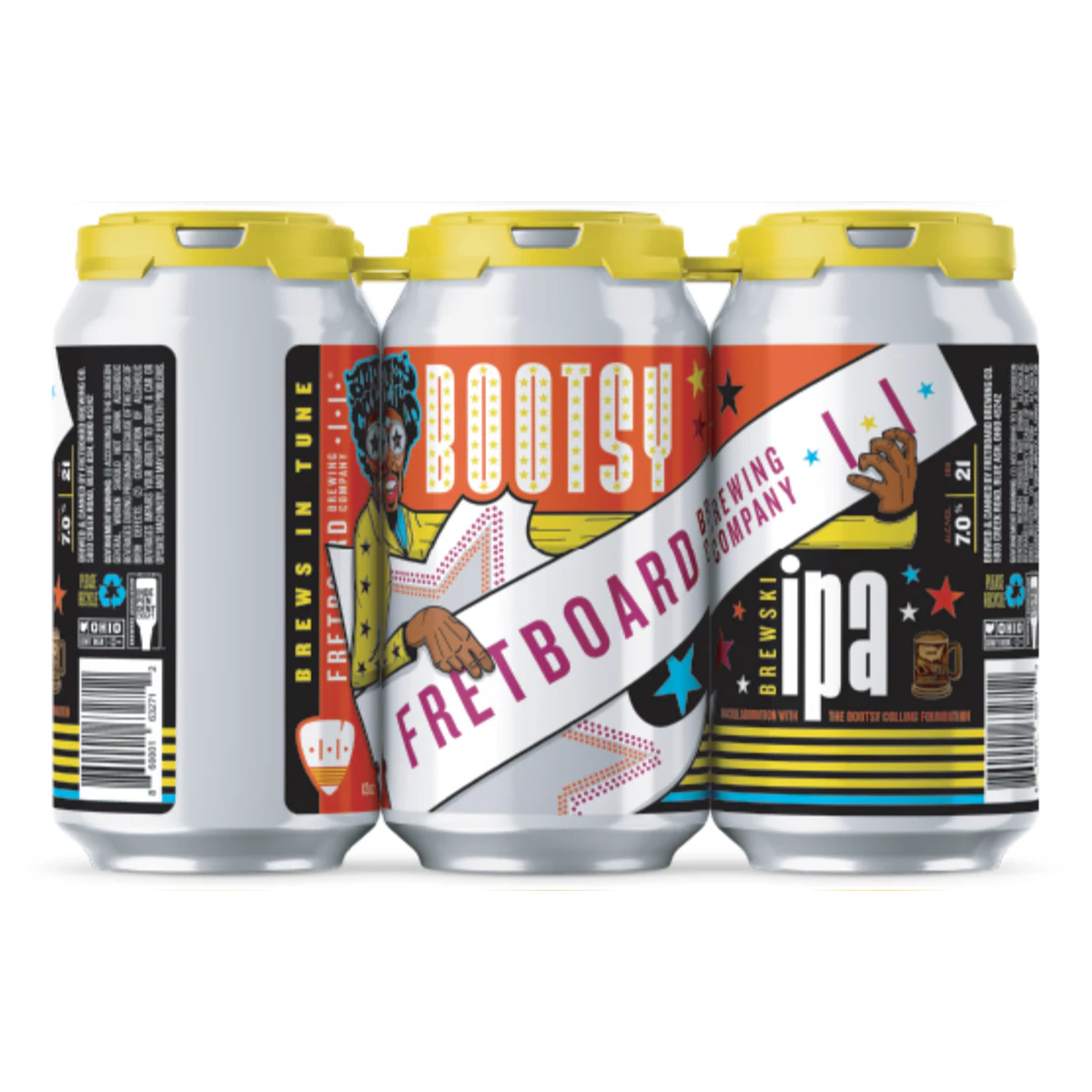 In collaboration with Bootsy Collins Foundation, Fretboard Brewing is proud to be the select producer of Bootsy Brewski IPA. This 3x Gold Medal IPA* is front loaded with bright funky citrus and finishes crisp and dry and is approved by the grand funkmaster himself